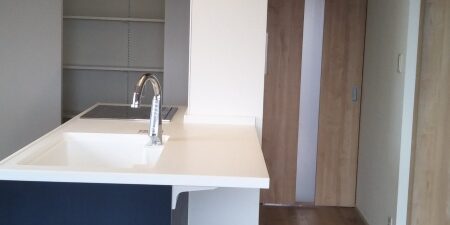 り、リビングルーム近くに移動して、アイランドキッチンを設置しました。お湯、水、排水の配管や換気扇ダクトの配管延長切り回しがあり、木造住宅ですとさほど問題ないのですが、マンションですと切り回しに不都合がたくさんあり、難易度の高い施工になりました。その分仕上がったときの喜びも大きいです。